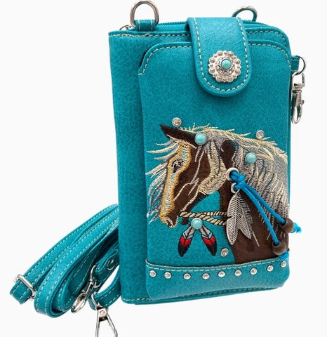 Introducing our Embroidered Horse Crossbody Western Wallet Phone Pouch with Wristlet, a stylish and functional accessory that combines the convenience of a wallet and phone pouch with the versatility of a wristlet strap. This crossbody wallet features a beautiful embroidered horse design that adds a touch of equestrian elegance to your everyday essentials. Includes 2 straps: crossbody and wristlet.
