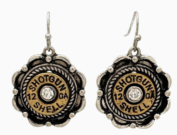 Floral Design 1" Shotgun 12 Gauge Shotgun Bullet Hook Dangle Earrings with rope.